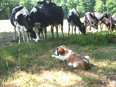 der Rinderweide, und die ebenso neugierigen Rinder trotteten