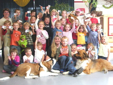 Ihre kleinen Hundeführerscheine in die Höhe,