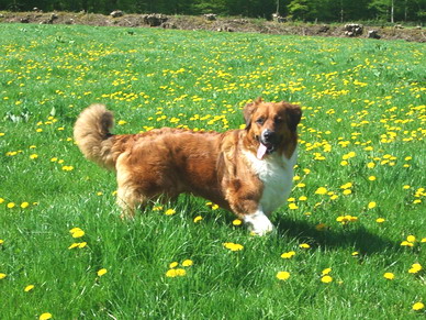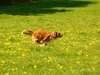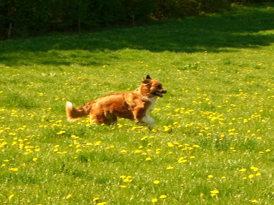Morgens ist erst mal toben in der nahegelegenen Löwenzahnwiese