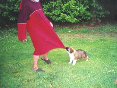 Während sich "Timmy" noch fragt, woher der Zwerg die Energie nimmt, springt Ylvi weiter ungeniert um ihn herum, um ihn zum Spielen aufzufordern.