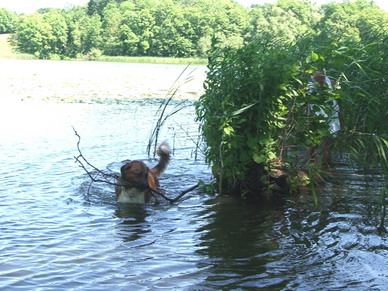 Tennisball ins Schilf ab, und Manni opferte sich, mit