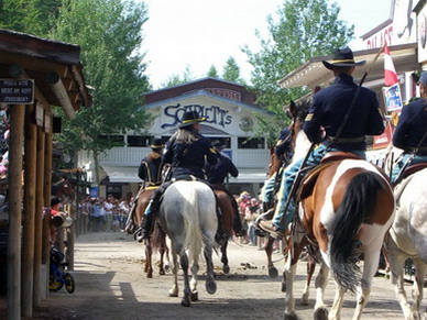 hinter Hunting Wolf die Main Street entlang gelaufen sind,
