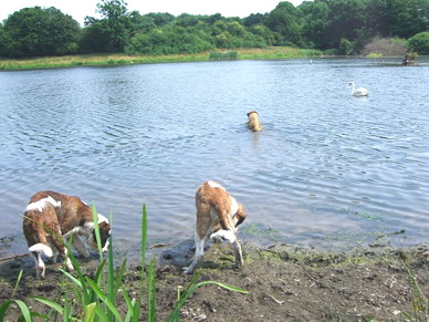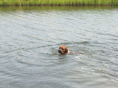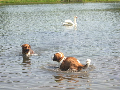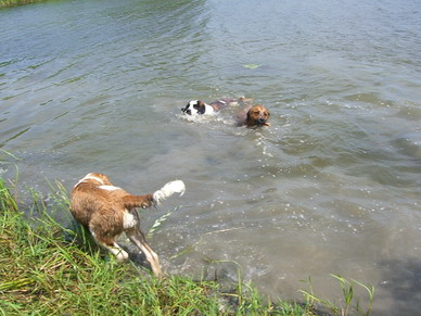 und ich habe beschlossen, mit den Hunden baden zu fahren.